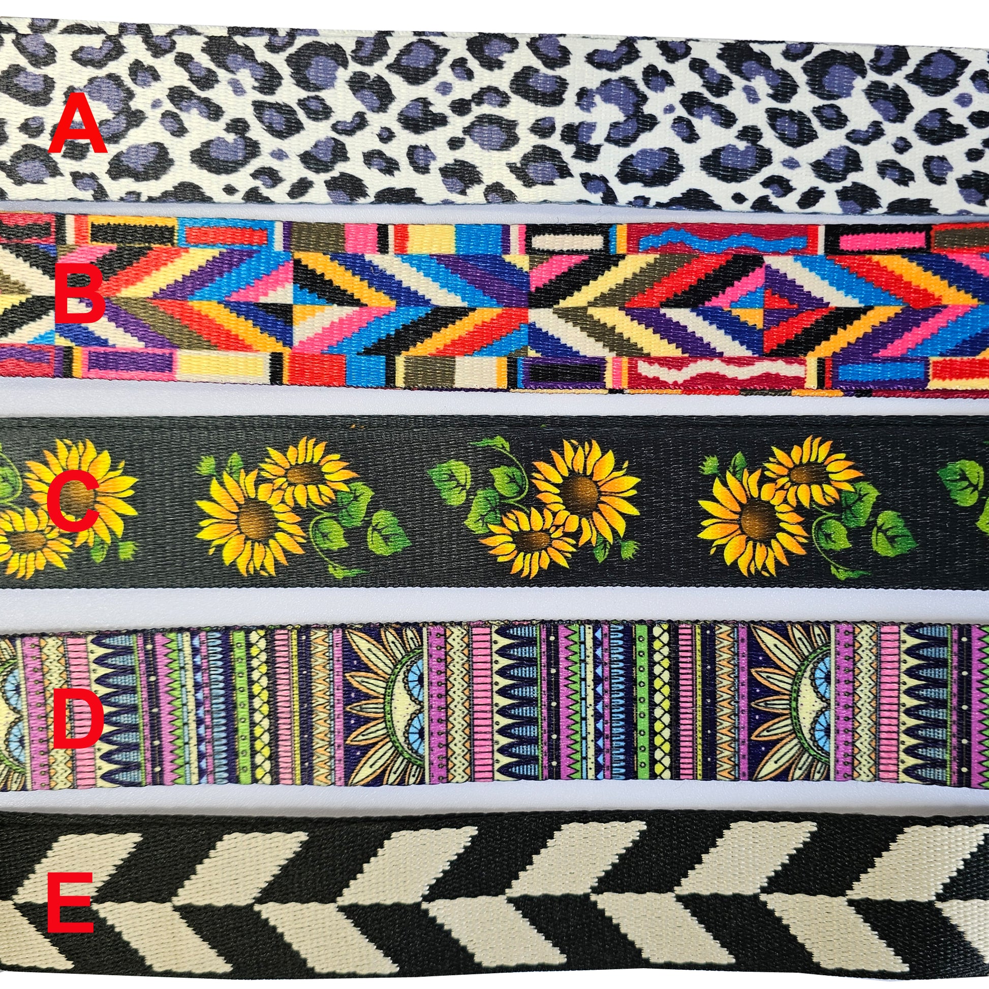 Colorful nylon pattern crossbody shoulder hand bag strap with silver hardware, come with 2 stainless steel wire Loops w/Secure Screw Lock cable.
